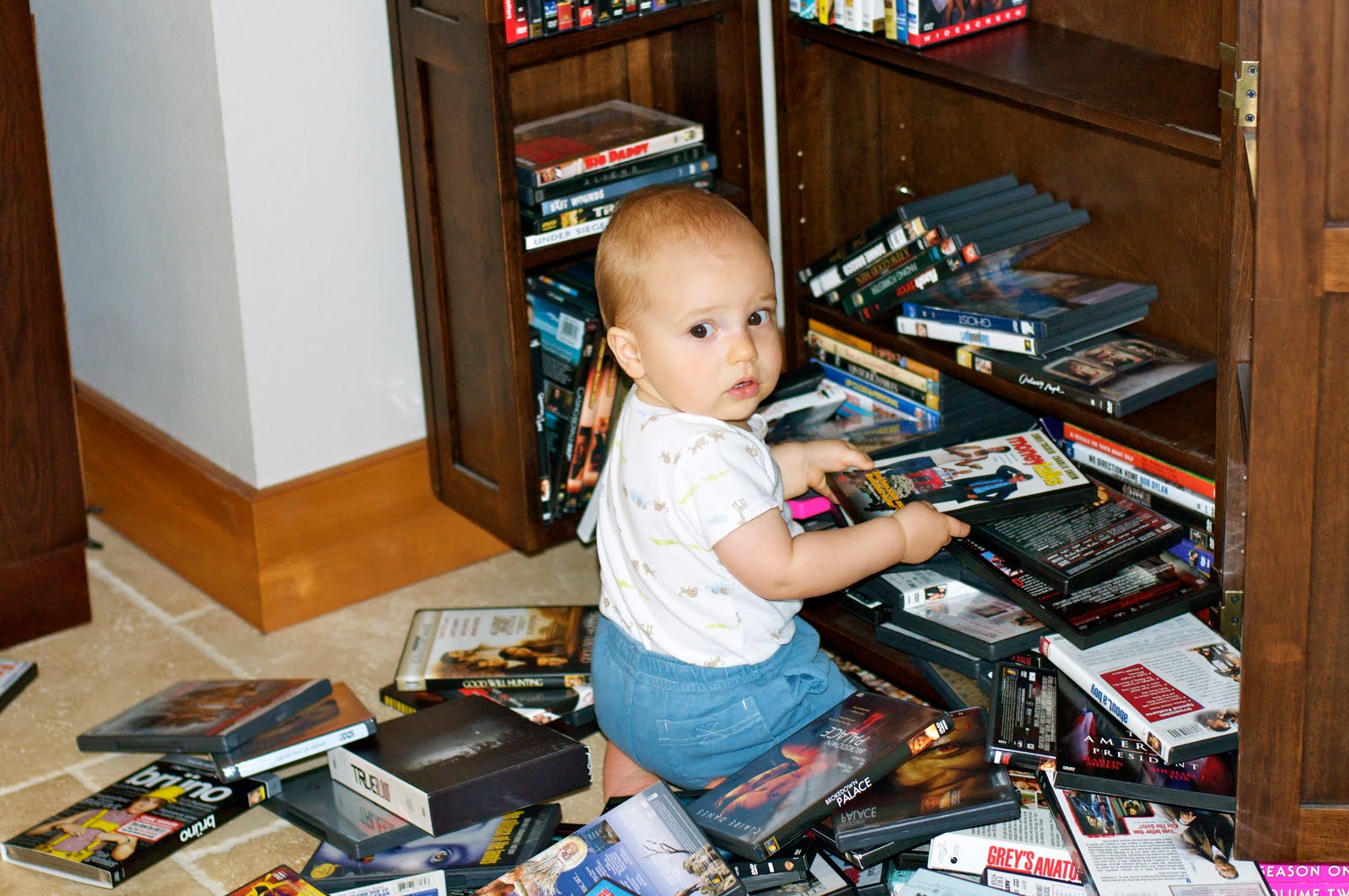 I think this is pretty hilarious. And if he really wants something, he can MOVE! He's been making his way around the house like this for about a month now and I have to say I think it's a crack up that now, when you hold his hand and he wants to walk straight forward, he sometimes turns to the side and side-steps as if he's walking on the wall!